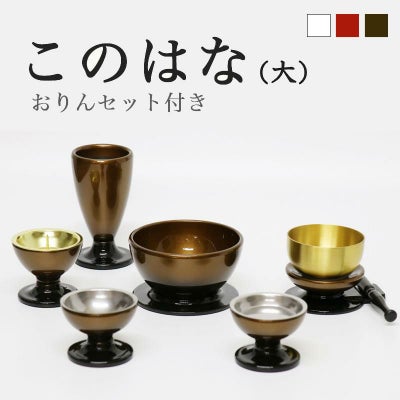 仏具 6点セット 「このはな」(大) 5具足+おりんセット モダン 仏壇 ブラウン ワイン ホワイトのレビューを書く