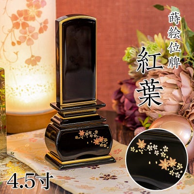 位牌 モダン 「紅葉」 蒔絵入 4.5寸(高さ:21cm) 花位牌 上塗位牌 漆塗り 本位牌 塗り位牌 モダン 小さい 桜 国産 名入れ おしゃれのレビューを書く