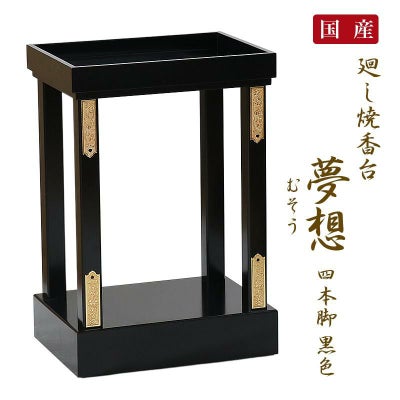 「日本製」廻し焼香台「夢想(むそう)4本脚」黒色 立焼香台 焼香台 立焼香机 寺院仏具のレビューを書く