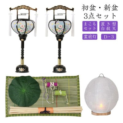 初盆セット 新盆セット 白紋天+霊前灯+まこもセット【初盆・新盆 3点セット D-3】お盆飾り 初盆飾り 盆ちょうちん 提灯 ギフト 回転灯のレビューを書く