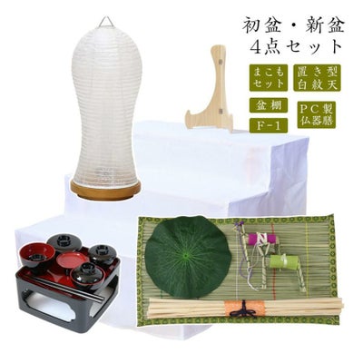 初盆セット 新盆セット 白紋天+まこもセット+PC仏器膳+盆棚【初盆・新盆 4点セット F-1】お盆飾り 初盆飾り 盆ちょうちん 提灯 ギフトのレビューを書く