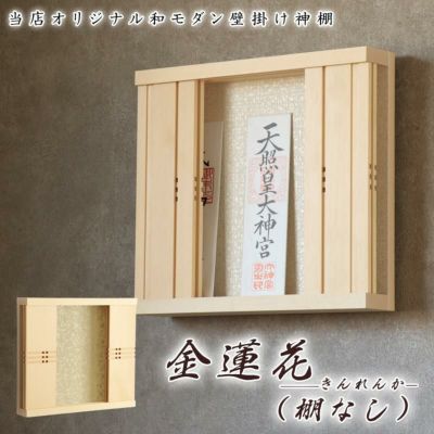 モダン神棚 「金蓮花 -きんれんか-(棚なし)」 三社 シンプル 国産 日本製 おしゃれ マンション 壁掛け セット お札のレビューを書く