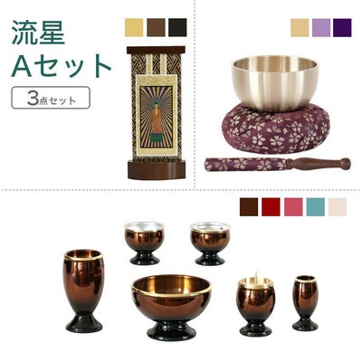 家具調仏具セット 流星Aセット 真鍮製仏具「流星」&国産おりん&掛軸 モダン仏具 仏壇仏具 マンション 具足のレビューを書く