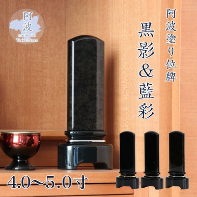 塗り位牌 モダン 「黒影&藍彩」 4.0寸・4.5寸・5.0寸美影塗り 藍染位牌 本位牌 板位牌 黒塗 仏具 仏壇 小さい おしゃれのレビューを書く