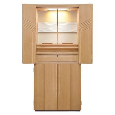 仏壇 「ティエロワ」 タモ 18×40号 (v13-025-1)/家具調仏壇 モダン仏壇 床置き 仏壇台付き リビング 上下セットのレビューを書く