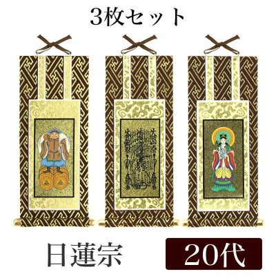 【メール便可能】掛け軸 オリジナル掛軸3枚セット 「日蓮宗」 20代(高さ20cm) 曼荼羅・鬼子母神・大黒天 浄法華宗 本尊 脇掛 仏具のレビューを書く