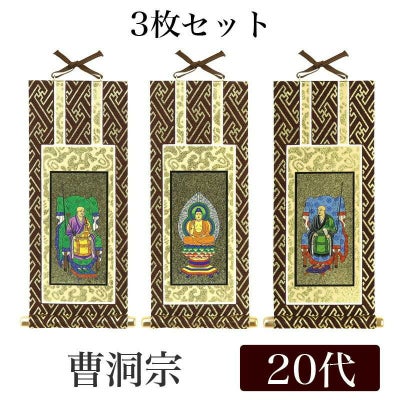 【メール便可能】掛け軸 オリジナル掛軸3枚セット 「曹洞宗」 20代(高さ20cm) 釈迦如来・常済大師・承陽大師 本尊 脇掛 仏具のレビューを書く