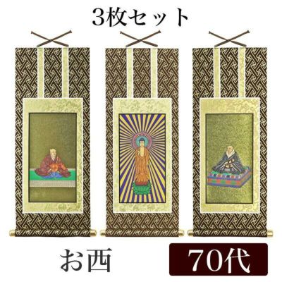 掛け軸 オリジナル掛軸3枚セット 「浄土真宗本願寺派」 70代(高さ39cm) 阿弥陀如来・蓮如上人・親鸞聖人 西 本尊 脇掛 仏具のレビューを書く