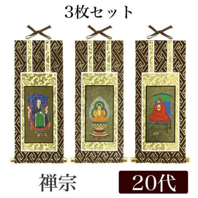 【メール便可能】掛け軸 オリジナル掛軸3枚セット 「禅宗」 20代(高さ20cm) 釈迦如来・道元禅師・達磨大師 本尊 脇掛 仏具のレビューを書く