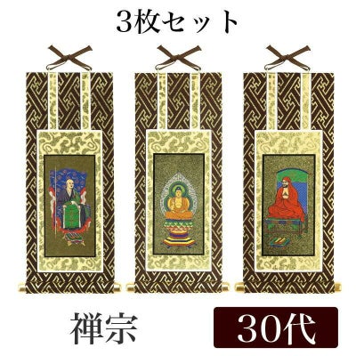 【メール便可能】掛け軸 オリジナル掛軸3枚セット 「禅宗」 30代(高さ25cm) 釈迦如来・道元禅師・達磨大師 本尊 脇掛 仏具のレビューを書く
