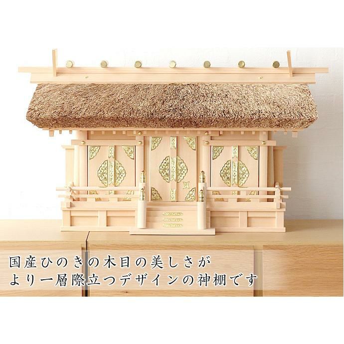 他の画像を見る 国産神棚 もれなく神具セットプレゼント 国産高級神棚 茅葺通し三社(木曽ひのき) No614 日本製 ヒノキ製 神具 神棚セット 価格 ¥ 129,500 税込 詳細を見る お気に入りに登録する (0)