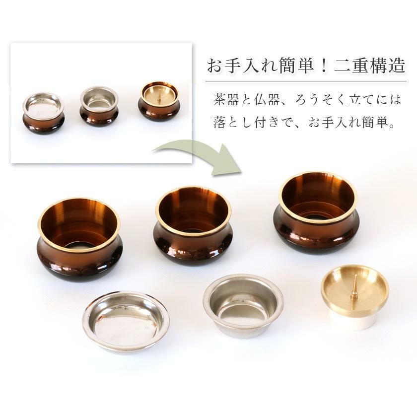 他の画像を見る モダン仏具 仏具 セット 【7点】「さざなみ」6具足+おりんセット 3寸 モダン仏具 仏壇 花立て 香炉 燭台 火立て 仏器 茶器 線香立て 価格 ¥ 11,800 税込 カートに入れる お気に入りに登録する (0)