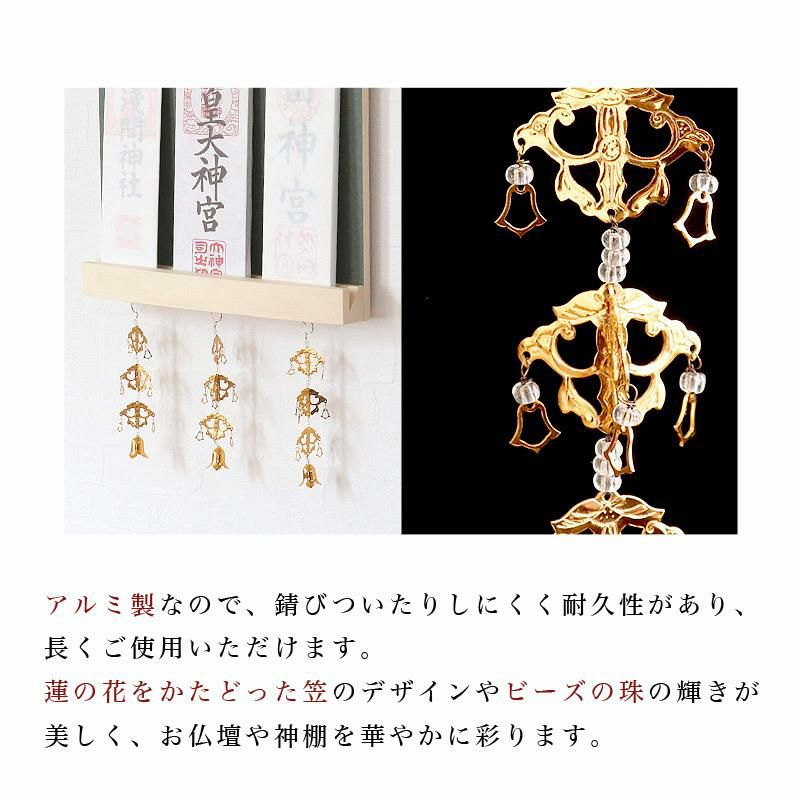 他の画像を見る 仏壇荘厳具の高級瓔珞(ヨーラク)仏壇 神棚 をより荘厳に メール便送料無料 「アルミ製 瓔珞(ようらく)」1本【小サイズ】 金メッキ (高さ14cm) 仏壇 仏具 神棚 価格 ¥ 1,250 税込 詳細を見る お気に入りに登録する (0)