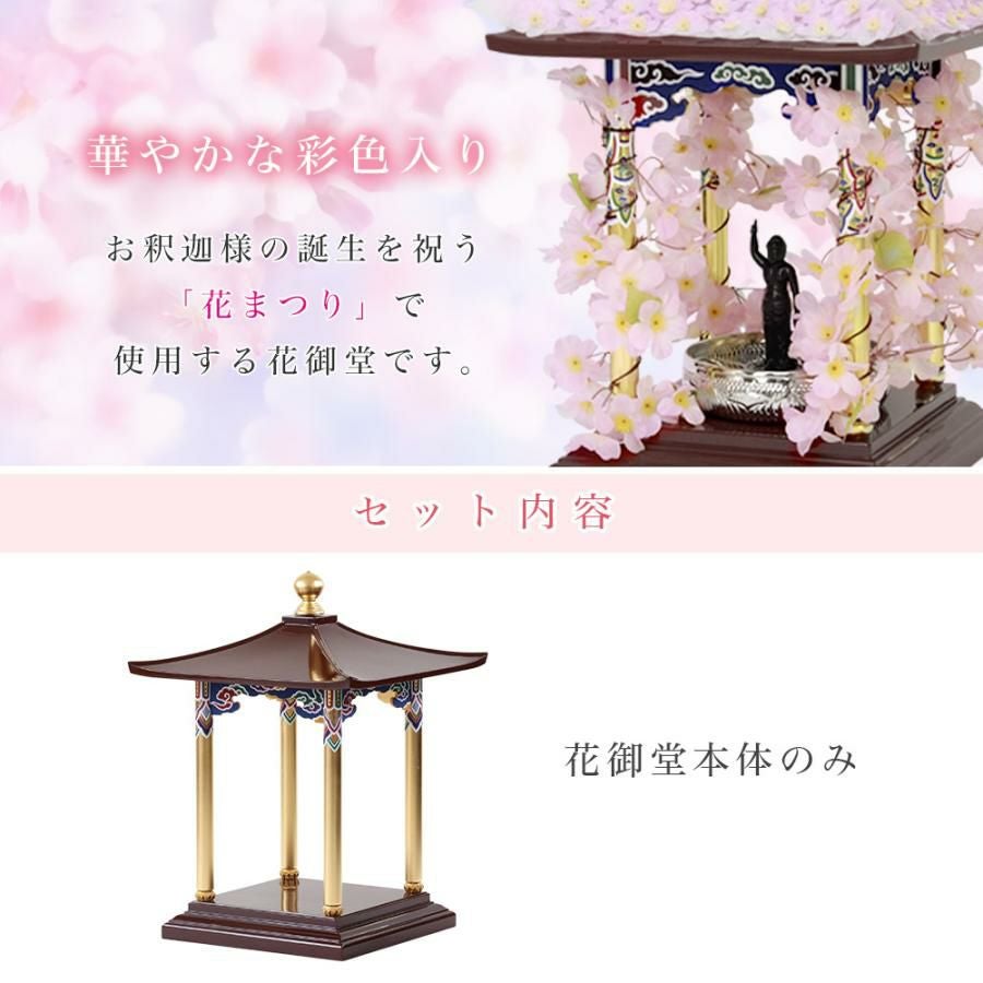 他の画像を見る お釈迦様の誕生を祝う花祭りには 可愛い花飾りの花御堂を! 花御堂 1.5尺 本体 単品 はなみどう はなまつり 花祭り仏具 灌佛盤 灌仏会 お堂 花まつり 木製 彩色 寺院 お寺 価格 ¥ 188,000 税込 カートに入れる お気に入りに登録する (0)