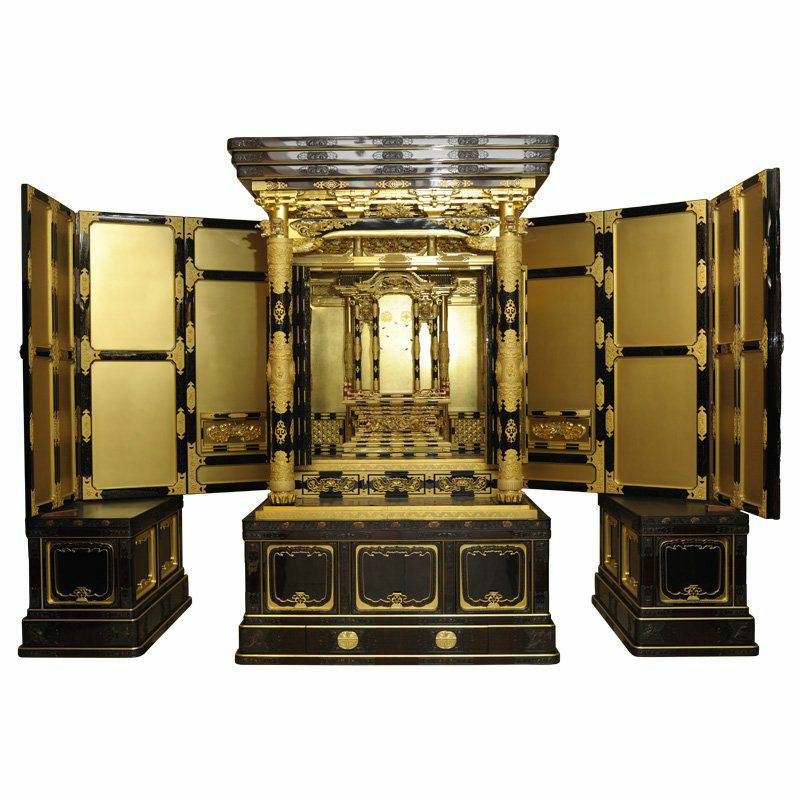 他の画像を見る 一人の材木商が日本一を夢見て製作した、唯一無二の金仏壇 金仏壇 43号 総開き本宮殿御拝造り 脇台付き 塗仏壇 蒔絵 名古屋壇 京仏壇 職人作り 黒漆 金箔 価格 ¥ 77,700,000 税込 カートに入れる お気に入りに登録する (0)