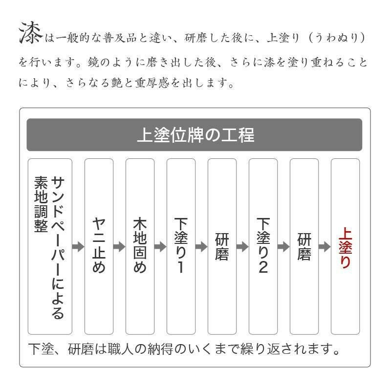 他の画像を見る 位牌 上塗り 49日 四十九日 全宗派対応 位牌 上塗 「春日(かすが)」 6.0寸(高さ:28.5cm)本位牌 塗位牌 高級 文字 仏具 仏壇 上塗り 名入れ 価格 ¥ 31,700 税込 詳細を見る お気に入りに登録する (0)