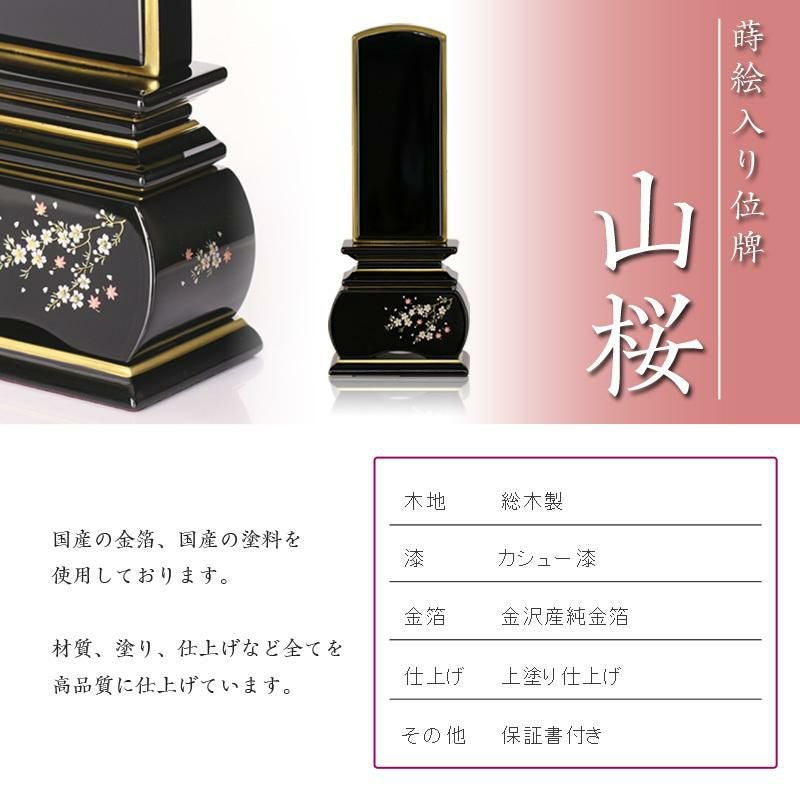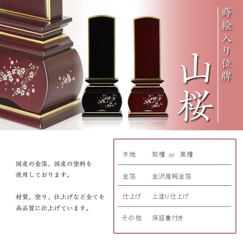 他の画像を見る 蒔絵モダン塗り位牌 桜 【日本製】 送料無料 位牌 モダン 上塗位牌 「銀杏呂門 桜」4.0寸 花位牌 蒔絵入 漆塗り 本位牌 塗り位牌 モダン 文字 仏具 仏壇 小さい 国産 名入れ おしゃれ 価格 ¥ 70,850 税込 詳細を見る お気に入りに登録する (0)