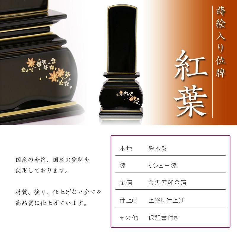 他の画像を見る 位牌 モダン「紅葉」4.0寸 送料無料 位牌 モダン 「紅葉」 蒔絵入 4.0寸(高さ:19.5cm) 花位牌 上塗位牌 漆塗り 本位牌 塗り位牌 モダン 仏壇 小さい 桜 もみじ 名入れ おしゃれ 価格 ¥ 51,800 税込 詳細を見る お気に入りに登録する (0)