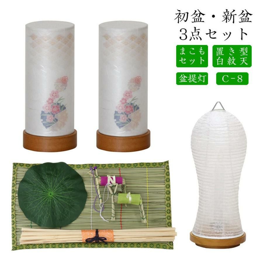他の画像を見る 初盆・新盆を迎える方にオススメ 初盆セット 新盆セット 白紋天+霊前灯+まこもセット【初盆・新盆 3点セット D-3】お盆飾り 初盆飾り 盆ちょうちん 提灯 ギフト 回転灯 価格 ¥ 11,610 税込 詳細を見る お気に入りに登録する (0)