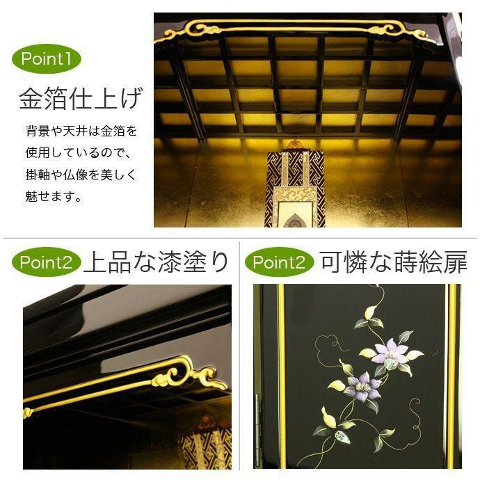 他の画像を見る 金仏壇 ミニ仏壇 小型仏壇 漆塗り 蒔絵 コンパクト ミニ仏壇 「花水木18号」(82-3) 幅40cm おしゃれ 仏壇 モダン 価格 ¥ 63,100 税込 カートに入れる お気に入りに登録する (0)