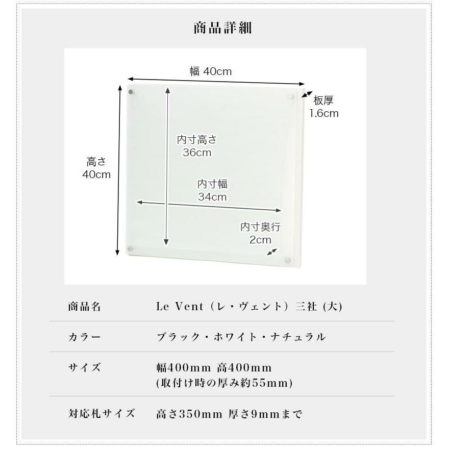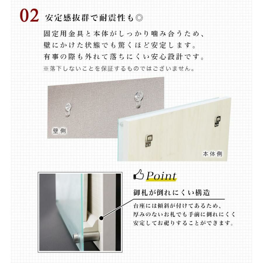 他の画像を見る 国産 日本製 オフィス 洋室 壁掛け 神棚 【受注生産品】壁掛け モダン神棚 「Le vent -レヴェント-」 四社 シンプル 国産 日本製 おしゃれ マンション レベント お札 価格 ¥ 50,000 税込 詳細を見る お気に入りに登録する (0)