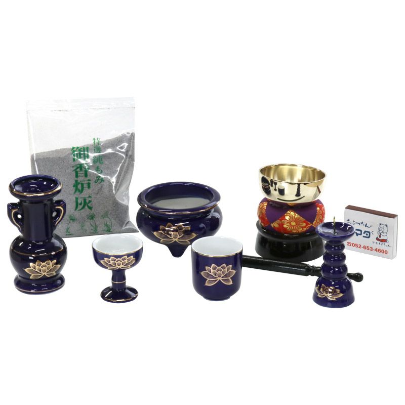 他の画像を見る 仏具 セット 瑠璃色 金蓮 陶器5点+おりんセット 香炉灰・マッチ付き ルリ色 モダン仏壇用 リン布団 ¥ 6,380 価格 ¥ 6,380 税込 カートに入れる お気に入りに登録する (0)