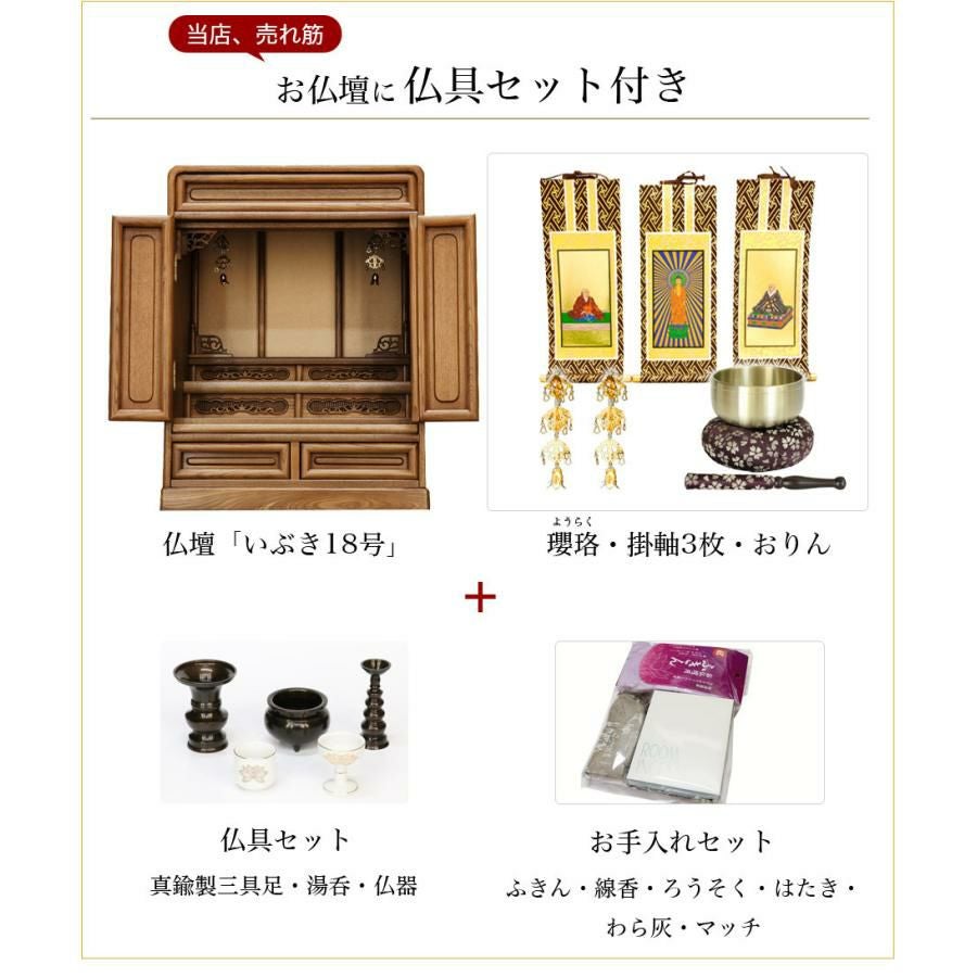 他の画像を見る ツキ板仕上げ 家具調仏壇 小型仏壇 上置き仏壇 昔ながらのダルマ型 仏壇セット「いぶき23号セット」ニレ 仏壇仏具セット 唐木仏壇 仏具セット付き 価格 ¥ 96,400 税込 詳細を見る お気に入りに登録する (0)