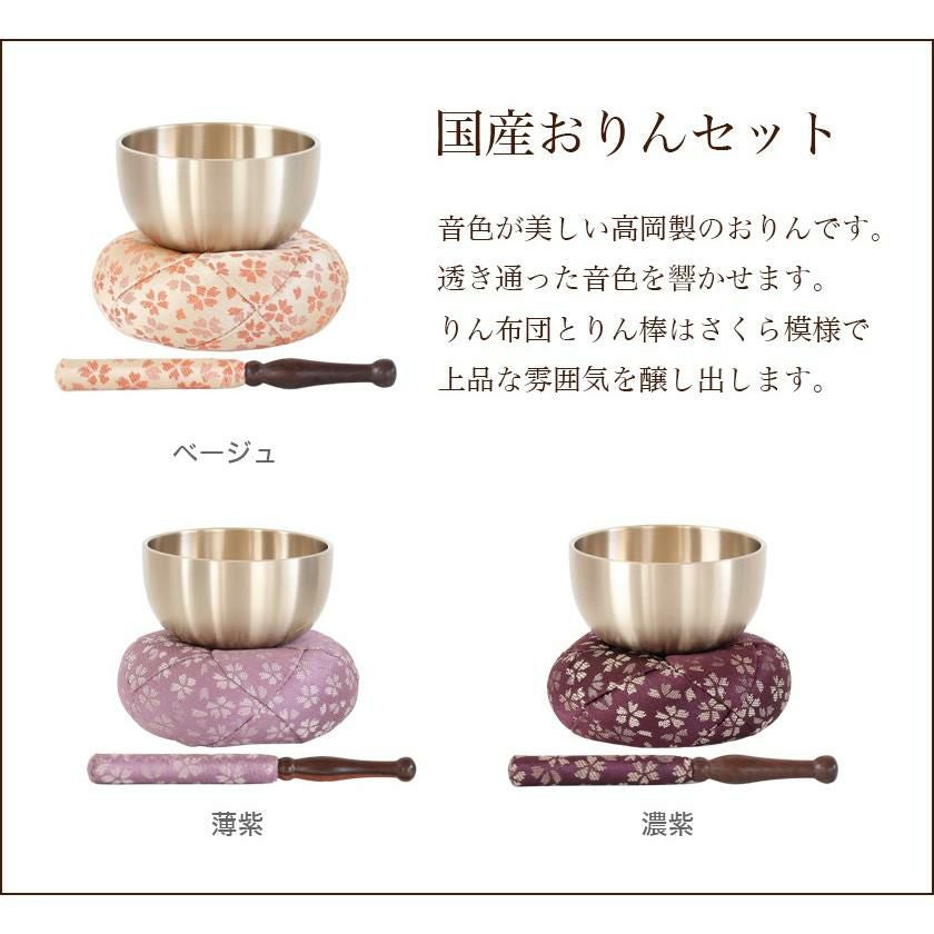 他の画像を見る 可愛らしいデザインのリン布団とリン棒の3点おりんセット 仏具 おりん 国産 おりんセット 4.0寸 【日和(ひより)】 (直径12.2cm)(おリン+リン棒+布団) 仏壇 桜柄 小さい お鈴 花柄 金襴 モダン仏壇用 リン布団 価格 ¥ 11,800 税込 詳細を見る お気に入りに登録する (0)