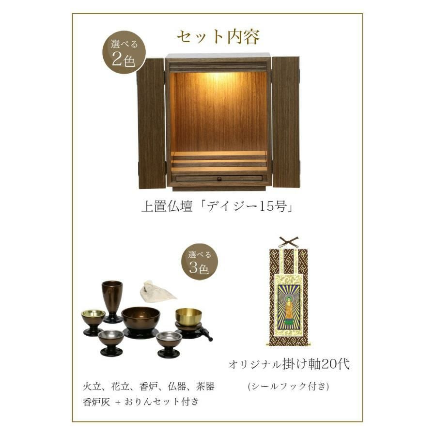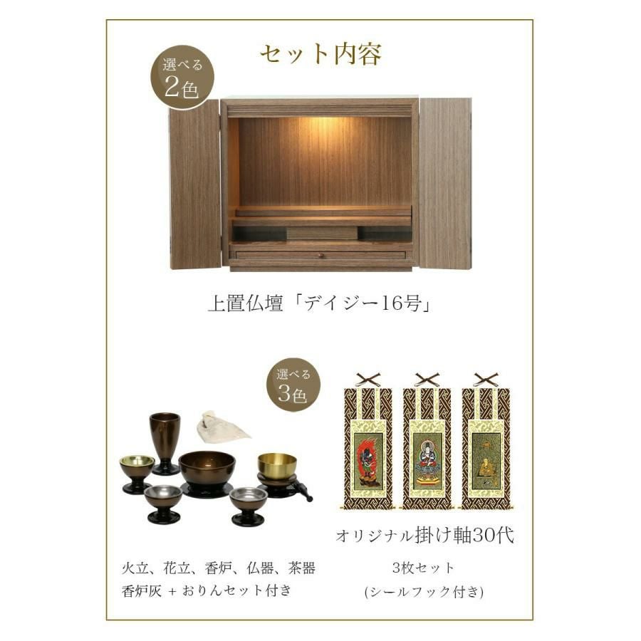 他の画像を見る ワイドミニ仏壇 ワイドミニ仏壇 仏壇仏具セット 「デイジー16号ワイド 仏具セット」LEDライト付き ウォールナット・ライト モダン 価格 ¥ 49,800 税込 詳細を見る お気に入りに登録する (0)