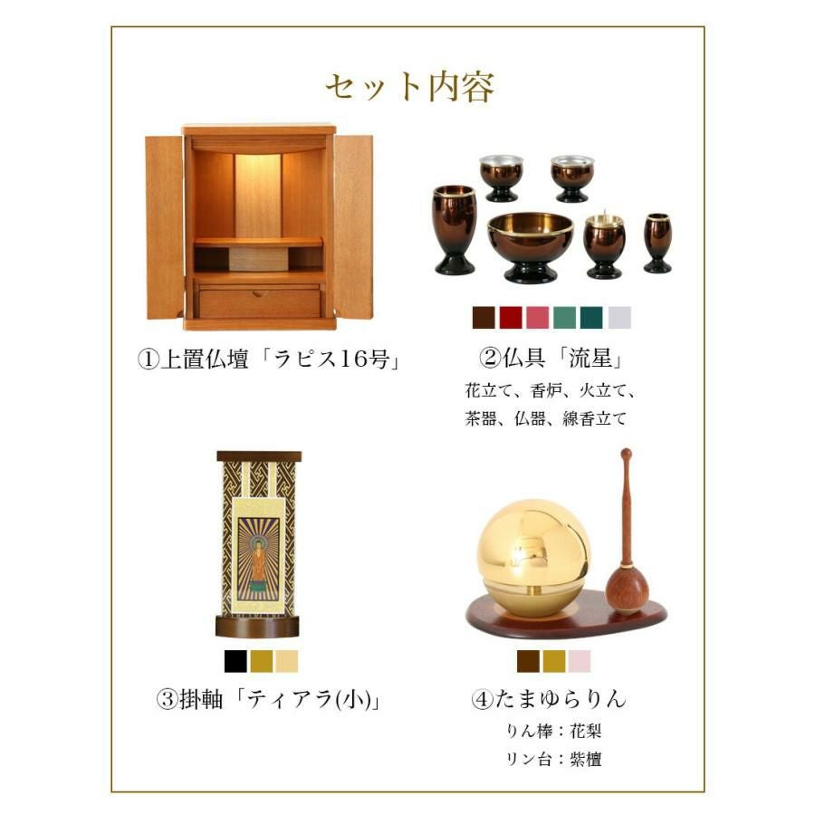 他の画像を見る リビング、洋室にピッタリ合う家具調仏壇。モダンミニ仏壇 小型上置 リビング仏壇 小型仏壇 上置仏壇セット 「ラピス16号セット」 モダン ミニ仏壇 小型仏壇 仏具付き 仏具セット たまゆらりん 価格 ¥ 64,800 税込 在庫切れ 詳細を見る お気に入りに登録する (0)