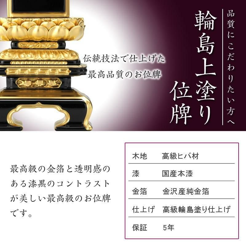 他の画像を見る 【日本製】本体のみ(文字入れを一緒に購入して下さい) 位牌 輪島上塗位牌 「面粉 吹蓮華千倉座」 5.0寸(高さ:25cm) 輪島塗り 漆塗り位牌 国産位牌 文字 送料無料 仏具 仏壇 名入れ 上塗り 価格 ¥ 234,700 税込 在庫切れ 詳細を見る お気に入りに登録する (0)